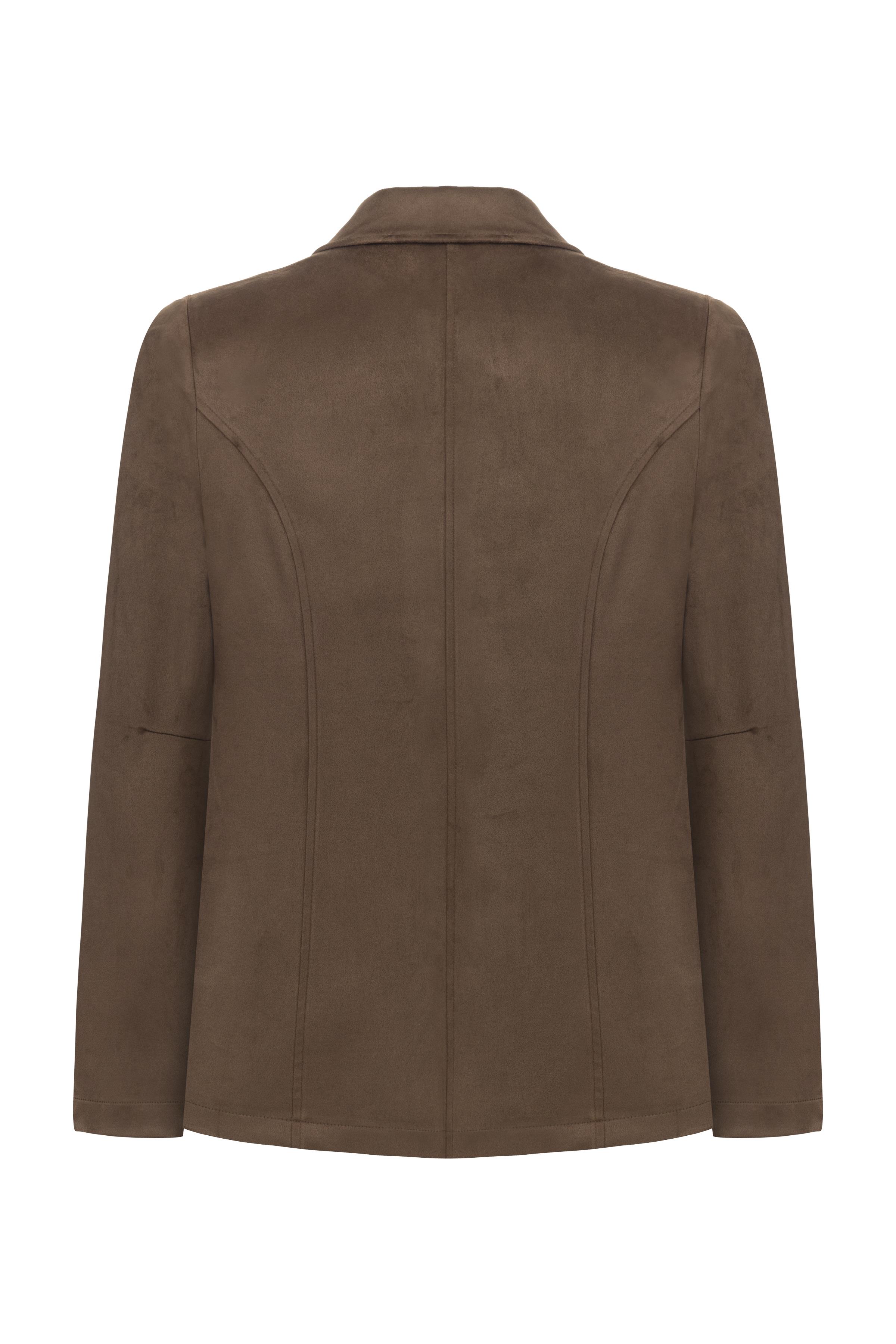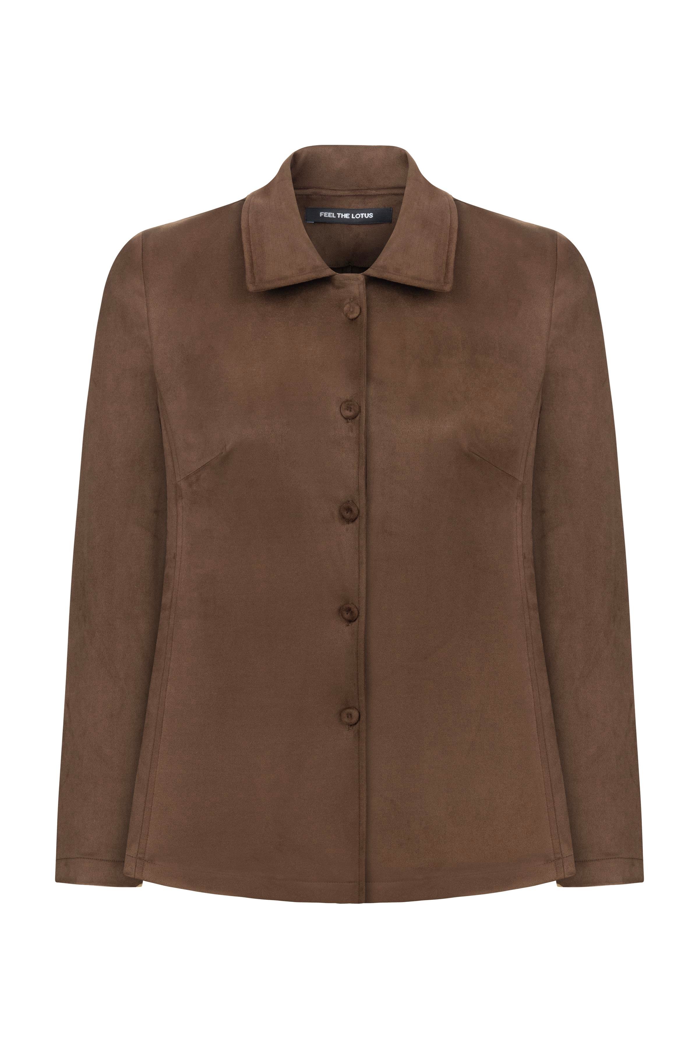 Lauren faux suede shirt features a classic collar and button front closure, making it a versatile piece for a timeless look.